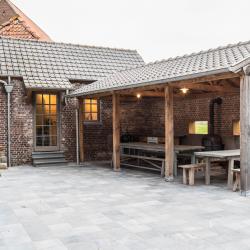 • grote tuin, terras, barbecue, vuurschaal, houtkachel