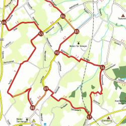 - Voor de route van 13 km: volg achtereenvolgens de knooppunten 67, 36, 82, 86, 85, 90, 56, 57, 89, 88, 55, 66 en 67