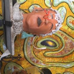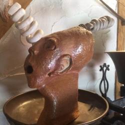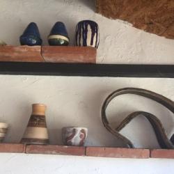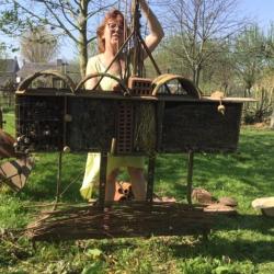 Martine Vandesteene bouwt sculpturen met vooral organische materialen: klei, papier, hout, soms in combinatie met onderdelen van oude metalen werktuigen of gebruiksvoorwerpen en toevallige vondsten. Daarnaast draait ze potjes op de draaischijf en maakt ze ook wel eens een collage. Haar werk ontstaat als een uiting van haar innerlijke zoektocht naar antwoorden en rust.