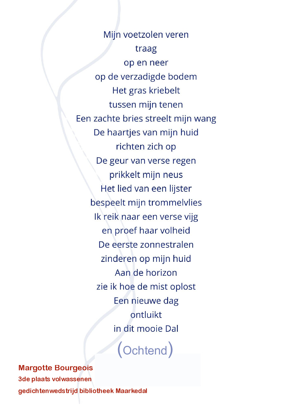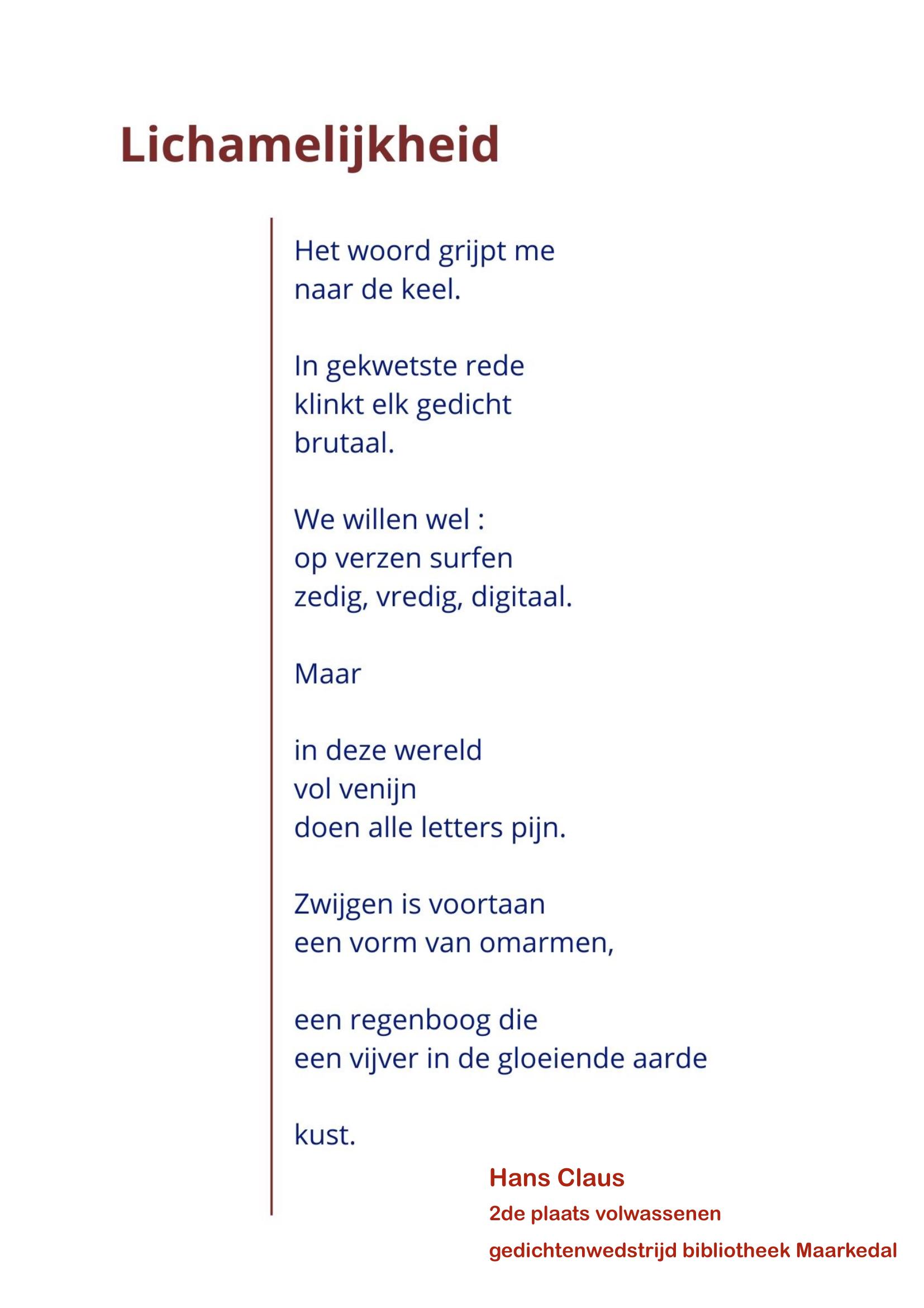 Winnaars gedichtenwedstrijd 2025Hartelijk dank aan alle deelnemers aan onze gedichtenwedstrijd en proficiat aan de winnaars!